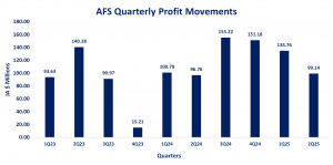 AFS paid taxes amounting to $115.51 million (2024: $110.78 million). The company recorded Profit for the Period of $233.90 million, an 18% increase relative to the $197.55 million recorded for the comparable period in 2024. Profit for the second quarter was $99.14 million (2024: $96.76 million).