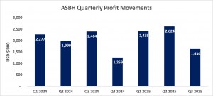 A.S. BRYDEN & SONS HOLDINGS LIMITED (ASBH) for the nine months ended September 30, 2025, reported a 36% increase in Revenue totaling $447.87 million compared to $328.44 million in the corresponding period last year. Revenue for the third quarter had a 9% increase to close at $147.26 million compared to $135.49 million for the comparable quarter of 2024. This was driven primarily by the incremental revenues from acquisitions and organic growth from Consumer Goods and Healthcare divisions