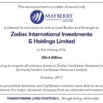 On October 09, 2017, Jamaica Broilers Group Limited (JBG) advised the public of its acquisition of a second hatchery in the United States. The hatchery
