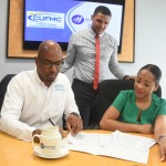 March 12, 2019 Adrian Thompson, CEO of Credit Union Fund Management Company Ltd, signs the sales agent agreement with Tania Waldron-Gooden, director of investment banking,