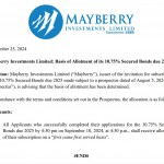 Mayberry Investments Limited: Basis of Allotment of its 10.75% Secured Bonds due 2025