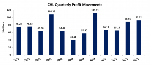 Taxation for the twelve months increased by 87% to $64.69 million (2024: $34.65 million). Net Profit for the twelve months amounted to $312.29 million, a 14% increase compared to $273.69 million reported in 2024. For the fourth quarter, Net Profit was $92.32 million (2024: $111.71 million).