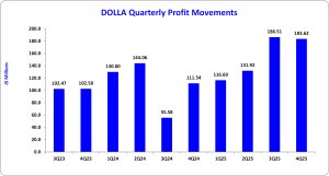 Dolla Financial Services Limited (DOLLA), for the twelve months ended December 31, 2025, reported a 30% increase in total interest income, amounting to J$1.97 billion, compared to J$1.52 billion recorded for the corresponding period in 2024. Interest income from loans grew to J$1.97 billion (2024: J$1.52 billion), with the parent company (Jamaica) driving the bulk of growth at J$1.59 billion — a 48% increase year-over-year — while Ultra Financier contributed J$533.8 million.