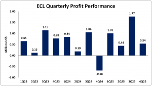 Earnings per share (EPS) for the twelve months amounted to $0.0023 (2024: $0.0009). For the quarter, EPS totaled $0.0003, compared to a loss per share (LPS) of $0.0004 in 2024. The trailing twelve-month EPS was $0.0023, based on 1,637,500,000 shares.