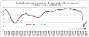 In the reported it was noted, according to an estimation of annual growth for 2020, based on quarterly data, employment decreased by 1.8% in the euro area and by 1.6% in the EU.