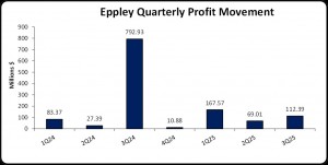 Eppley Limited (EPLY) for the nine months ended September 30, 2025, reported an 81% increase in Gross Investment Income totaling $1.13 billion compared to $623.13 million in the corresponding period last year. Gross Investment Income for the third quarter had a 50% increase to close at $342.29 million compared to $228.28 million for the comparable quarter of 2024.