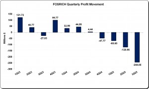 Fosrich Company Limited (FOSRICH) for the nine months ended September 30, 2025, reported a 14% decrease in Revenue totaling $2.42 billion compared to $2.82 billion in the corresponding period last year. Revenue for the third quarter had a 23% decrease to close at $831.92 million compared to $1.07 billion for the comparable quarter of 2024. FosRich highlighted, “Our year-to-date numbers continue to be adversely affected by protracted delays affecting international shipping. This has affected our supplies of both finished goods and raw material. Raw material delays continue to interrupt our manufacturing, which limited our ability to keep the market supplied with these needed products. This has resulted in some run-off in our inventory balances.”