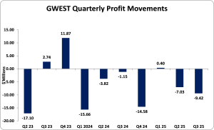 GWEST Corporation Limited (GWEST), for the nine months ended December 31, 2025, reported revenues of $202.32 million, a marginal decline when compared to $202.56 million recorded in the corresponding period of 2024. For the third quarter, revenue amounted to $60.16 million, representing a 20% decrease relative to the $75.66 million earned in the similar quarter of the prior year.