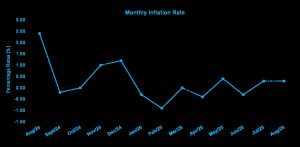 The Statistical Institute of Jamaica (STATIN) reported that as of August 2025, the point-to-point inflation rate was +1.2%; 2.1 percentage points lower than the 3.3% recorded between July 2024 to July 2025. Compared to July 2025, the All-Jamaica Consumer Price Index (CPI) increased by 0.3% in August 2025.