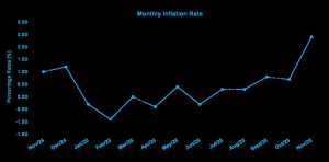 The Statistical Institute of Jamaica (STATIN) reported that as of November 2025, the point-to-point inflation rate was +4.4%; 1.5 percentage points higher than the 2.9% recorded between October 2024 to October 2025. Compared to October 2025, the All-Jamaica Consumer Price Index (CPI) increased by 2.4% in November 2025.