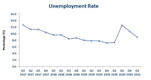 According to the Statistical Institute of Jamaica (STATIN), as at January 2021, there were 1,194,800 employed persons. This was 74,300 or 5.9% less than the number of persons when compared to January 2020. The unemployment rate amounted to 8.9%, which was 1.5 percentage points higher than the rate in January 2020. The unemployment rate for males increased by 1.6 percentage points to 7.6%. For females, the rate increased by 1.4 percentage points to 10.4% when compared to January 2020.