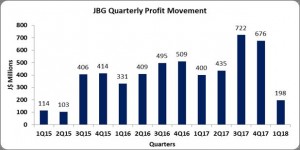 JBG reported finance income of $10.44 million (2016: $123.29 million) a decrease of 92%, while finance costs declined by 8% to $150.45 million relative to $163.27 million in 2016.