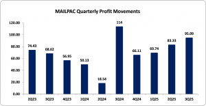 MAILPAC Group Limited (MAILPAC) for the nine months ended September 30, 2025 reported a 25% increase in Revenue totaling J$2.16 billion compared to J$1.72 billion in the corresponding period last year. Revenue for the third quarter was J$733.01 million, remaining flat compared to J$732.03 million for the comparable quarter of 2024.