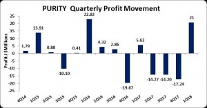 The company reported Total Expenses of $83.32million, an increase of 9% when compared to the $76.13 million reported in 2017. Administrative Expenses amounted $49.71million ,up 16% relative to the $42.74million reported in 2017, while, Selling Expense was up 1% to close at $33.61million (2017: $33.38 million).