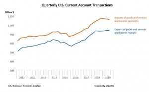 According to statistics from the U.S. Bureau of Economic Analysis (BEA), the third quarter deficit amounted to 2.3% of current dollar gross domestic product. In addition, BEA noted, “the $1.1 billion narrowing of the current account deficit in the third quarter mainly reflected a reduced deficit on goods and an expanded surplus on primary income.”